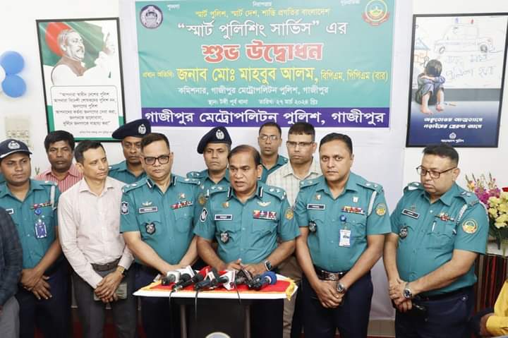অদ্য ২৭ মার্চ ২০২৪ খ্রিঃ, রোজ বুধবার টঙ্গী পূর্ব থানা পরিদর্শনকালে "স্মার্ট পুলিশিং সার্ভিস" এর শুভ উদ্বোধন করেন গাজীপুর মেট্রোপলিটন পুলিশের মান্যবর কমিশনার জনাব মোঃ মাহবুব আলম বিপিএম, পিপিএম (বার)। পুলিশিং সেবা আধুনিকায়ন, দ্রুততম সময়ে সেবা প্রদান এবং জবাবদিহিতা নিশ্চিতকরণ "স্মার্ট পুলিশিং সার্ভিস" এর মূল লক্ষ্য বলে জানান সম্মানিত কমিশনার মহোদয়।