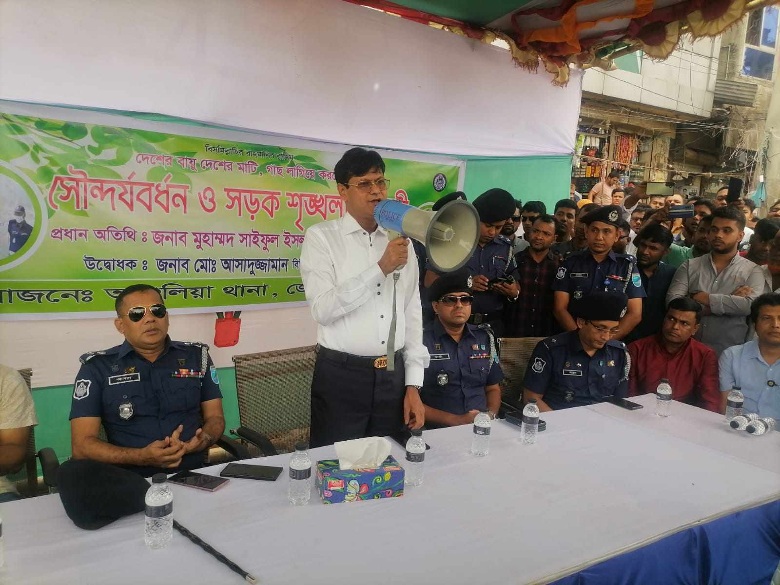 সাভার ও আশুলিয়ার মেইন সড়ক থেকে হকার মুক্ত করনে। সৌন্দর্যবর্ধন ও সড়ক শৃঙ্খলা কর্মসূচি অনুষ্ঠানের আয়োজন করা হয়।সোমবার ৬ মে দুপুর ১২ টায় আশুলিয়ার পল্লীবিদ্যুৎ বাসস্টান্ডে।আশুলিয়া থানা পুলিশের আয়োজনে এ অনুষ্ঠান টি অনুষ্ঠিত হয়।সৌন্দর্যবর্ধন ও সড়ক শৃঙ্খলা কর্মসূচিতে,রাস্তার সৌন্দর্য বজায় রাখতে বৃক্ষ রোপন উউদ্বোধন করা হয়।এ অনুষ্ঠানে বৃক্ষ রোপন করতে সার্বিক সহযোগীতায় ছিলেন জাতীয় শ্রমিকলীগ আশুলিয়া থানা কমিটি।অনুষ্ঠানে প্রধান অতিথি হিসাবে উপস্থিত ছিলেন মুহাম্মদ সাইফুল ইসলাম সংসদসদস্য ঢাকা-১৯ আসন।আসাদুজ্জামান বিপি এম পিপি এম (বার) পুলিশ সুপার ঢাকা।আব্দুল্লাহিল কাফী পিপি এম(বার)অতিরিক্ত পুলিশ সুপার ক্রাইম অপস্ ও ট্রাফিক উত্তর ঢাকা।শহিদুল ইসলাম অতিরিক্ত পুলিশ সুপার সাভার সার্কেল ঢাকা।এ এফ এম সায়েদ অফিসার ইনচার্জ আশুলিয়া থানা ঢাকা।শাহ জামান অফিসার ইনচার্জ সাভার মডেল থানা।সুলতান মাহমুদ (সভাপতি) জাতীয় শ্রমীকলীগ আশুলিয়া থানা ঢাকা।সাধারণ সম্পাদক জাতীয় শ্রমীকলীগ আশুলিয়া থানা কমিটি সহ গন্যামান্য ব্যাক্তিবর্গ।এ সময় প্রধান অতিথির বক্তব্যে ঢাকা-১৯ আসনের সংসদসদস্য মুহাম্মদ সাইফুল ইসলাম বলেন।সড়ক মহাসড়ক অবৈধ দখলমুক্ত করতে সকল প্রকার ব্যবস্থাগ্রহণ করা হবে। সহযোগীতা করবেন আইন-শৃঙ্খলা বাহিনী প্রশাসন। পাশাপাশি ঢাকা-১৯ আসনের সকল জায়গায় মাদকমুক্ত করনে,মসজিদের ইমাম সহ এলাকার সুূধীজনদের নিয়ে সলাপরামর্শ করতে চাই। মাদকমুক্ত সমাজ গড়তে প্রশাসন কে সহযোগীতা করতে এগিয়ে আসুন আপনিও।আপনার ও আপনাদের সহযোগীতা ছাড়া মাদকমুক্ত করা সম্ভব নয়।