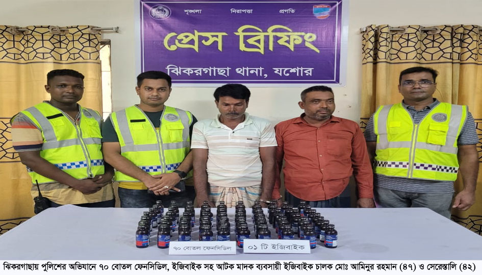 পুলিশের অভিযানে ৭০ বোতল ফেনসিডিল, ইজিবাইক সহ  মাদক ব্যবসায়ী আটক ,২
