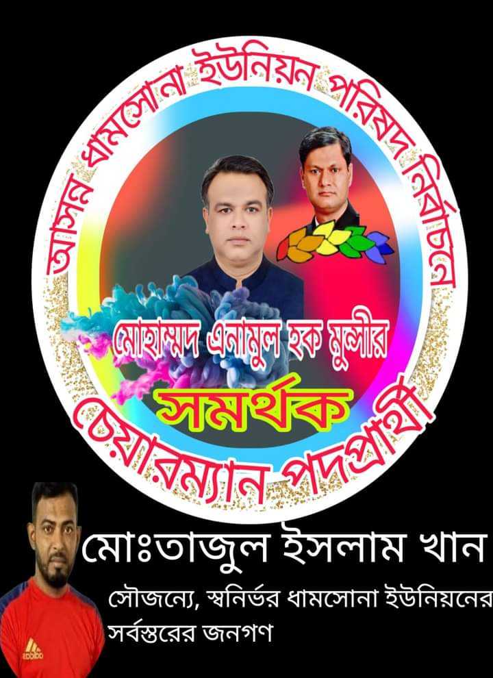 ধামসোনা ইউপি নির্বাচনে চেয়ারম্যান পদপ্রার্থী ঢাকা জেলা পরিষদের প্যানেল চেয়ারম্যান,আশুলিয়া থানা আওয়ামীলীগের দপ্তর সম্পাদক এনামুল হক মুন্সী মামার বিকল্প নাই।তরুন উদীয়মান আওয়ামীলীগ কর্মী তাজুল ইসলাম খাঁন বলেন,ধামসোনা ইউপি নির্বাচন করতে যারা প্রচার করে চলেছেন।সবার তুলনায় এনামুল মামা জনসমর্থনে বহুগুণে এগিয়ে আছেন।মানবিক বা সার্বিক বিষয় নিয়ে কোনো ব্যাক্তিই তার ধারে কাছে নেই।তার নির্বাচনীয় ঘোষনায় আলোড়ন সৃষ্টি হয়েছে ধামসোনা ইউপির প্রত্যেকটি ওয়ার্ড ও পাড়া মহল্লায়।এনামুল হক মামা দানবীর হিসাবে পরিচিত,মানুষ তাকে গরীবের রাজা নামেই চেনে।গৃহহীনদের ঘর,প্রতিবন্ধীদের গাড়ি,কন্যাদায়গ্রস্থদের সহযোগীতা,দুস্থ ছাত্রছাত্রী,অসুস্থ রোগী,বেকার যুবক,মসজিদ মাদ্রসা মন্দীর সহ সকল ধর্মীয় প্রতিষ্ঠানের প্রতি সজাগ দৃষ্টি রেখে মানব কল্যানে কাজ করে যাচ্ছেন তিনি।তার নাম বীর মুক্তিযোদ্ধা সহ শিশু বৃদ্ধা ময়মুরুব্বি সকলের আলোচনার কেন্দ্রবিন্দুতে।নির্বাচনীয় বিষয় নিয়ে এনামুল হক মুন্সী বলেন।আমি নির্বাচন করতে ইচ্ছুক তবে আমার ইচ্ছায় নয়।জনগনের ইচ্ছাই আমার ইচ্ছা।প্রিয় এলাকাবাসী আমি আপনাদেরই এনামুল,জানিনা আপনাদের বিশ্বাস আস্থা ভালোবাসার প্রতিদান কতটুকু দিতে পেরেছি বা পারবো।আমি আমার দৃষ্টিকে সবসময় সার্বজনীন পর্যায়ে রাখার চেষ্টা করি।আমি আলোতে মুগ্ধ তুষ্ট নই,তুষ্ট আলোর উৎস সুর্যে।আমাকে একটিবার আপনাদের সেবা করার সুযোগদিন।আমাকে কাজের জন্য ডাকতে হবেনা,আমাকে পাওয়ার জন্য দির্ঘ সময় বসে থাকতে হবেনা।আপনার মৌলিক অধিকার বাস্তবায়নে আমি এনামুল নিরলস পরিশ্রম করে যাব ইনশাআল্লাহ।ডিজিটাল বাংলার রুপকার বঙ্গবন্ধু কন্যা জননেত্রী মাননীয় প্রধানমন্ত্রী মমতাময়ী মা শেখ হাসিনার স্বপ্ন গ্রাম হবে শহর সেটিকে বাস্তবায়ন করতে।ঢাকা- ১৯ আসনের নবনির্বাচিত সংসদসদস্য মুহাম্মদ সাইফুল ইসলাম এর দেখানো পথ অনুস্বরন করে।স্বনির্ভর ধামসোনা ইউনিয়ন কে উন্নয়নের রোল মডেল হিসাবে গড়ে তুলবো ইনশাআল্লাহ।