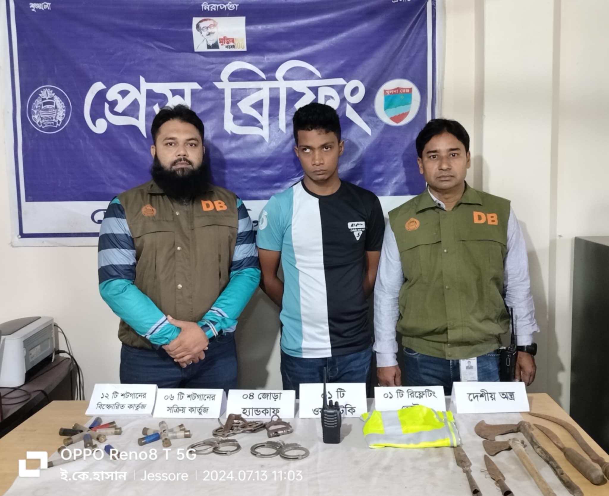 পুলিশের বিভিন্ন সরঞ্জামাদি, দেশীয় অস্ত্রসস্ত্র ও গুলি সহ ভূয়া ডিবি পুলিশ গ্রেফতার