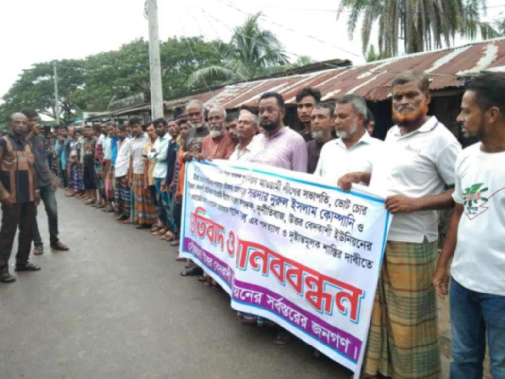 খুলনার কয়রা উপজেলার ৬নং উত্তর বেদকাশি ইউনিয়নের চেয়ারম্যান ও ইউনিয়ন আওয়ামীলীগের সভাপতি সরদার নুরুল ইসলাম কোম্পানির পদত্যাগের দাবিতে বিক্ষোভ মিছিল শেষে মানববন্ধন অনুষ্ঠিত হয়েছে।