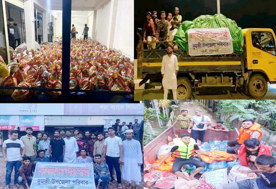 দেশে চলমান বন্যায় ক্ষতিগ্রস্থ লোকজনের জন্য খাদ্য সামগ্রী নিয়ে পটুয়াখালী জেলার দুমকি উপজেলার সাধারণ শিক্ষার্থীদের একটি টীম লক্ষ্মীপুরের উদ্দেশ্যে রওনা দিয়েছে।