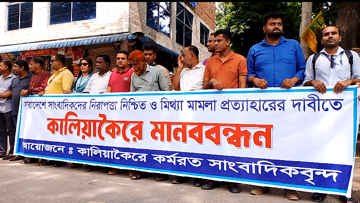 মিথ্যা মামলার প্রত্যাহারের দাবিতে সাংবাদিকদের  মানববন্ধন