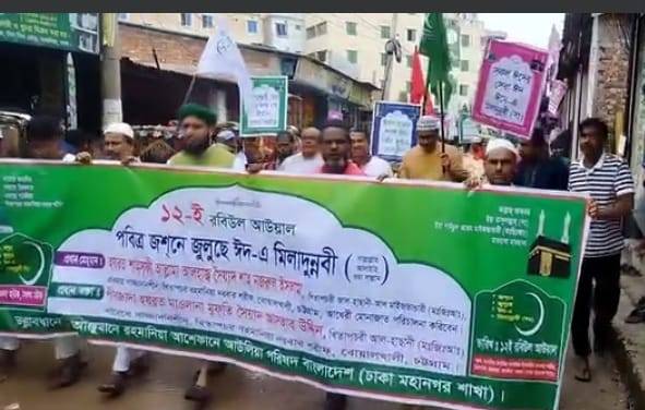আশুলিয়ায় ১২ ই রবিউল আওয়াল উপলক্ষে পবিত্র জশনে জুলুছে ঈদ - এ মিলাদুন্নবী পালিত।সোমবার ১৬ই সেপ্টেম্বর ২০২৪ আশুলিয়ার সাঈদ মীরের উদ্যোগে খিতাপচর রহমানিয়া দরবার শরিফে,পবিত্র জশনে জুলুছে ঈদ- এ মিলাদুন্নবী পালিত। উক্ত ঈদ- এ মিলাদুন্নবী উপলক্ষে উপস্থিত হয়ে কলেমার পতাকা তলে একই ব্যানারে যোগ অগনিত মুসল্লি মুসলিম আশেকানে। এ সময় আগত হজরত শাহছুফী আল্লামা আলহাজ্ব সৈয়্যদ শাহ নজরুল ইসলাম খিতাপচরী আল হাসানী আল মাইজভান্ডারী (মঃজিঃআঃ)।বলেন,আমরা মুসলমানরা সন্ত্রসী নই উগ্রবাদী নই এই বার্তা সারা দুনিয়াতে পৌছে দিতে চাই। ৫৭০ খৃষ্টাব্দে আজকের এই দিনে হজরত মুহাম্মদ (সা.) পৃথিবীতে এসেছিলেন তাওহিদের মহান বাণী নিয়ে। প্রচার করেছেন শান্তির ধর্ম ইসলাম। তাঁর আবির্ভাব এবং ইসলামের শান্তির বাণীর প্রচারে সারা বিশ্বে আলোড়ন সৃষ্টি হয়।মহানবী হজরত মুহাম্মদ (সা.)-এর পিতা আবদুল্লাহ ও মাতা আমিনা। জন্মের আগেই রাসুল (সা.) তাঁর বাবাকে হারান এবং ছয় বছর বয়সে তিনি মাতৃহারা হন।সমগ্র আরব জাহান যখন পৌত্তলিকতা ও অনাচারের অন্ধকারে নিমজ্জিত ছিল, সেই সময়ে জাহেলিয়ার যুগে মহানবী হজরত মুহাম্মদ (সা.)-কে সারা বিশ্বজগতের জন্য রহমতস্বরূপ পাঠিয়েছিলেন সর্বশক্তিমান মহান আল্লাহ ।মিলাদুন্নবী পালনে আগত মেহমানেরা আশুলিয়া থানার জামগড়ার মেইন সড়কে একই ব্যানারে কলেমার পতাকা উত্তলনে বৃহত একটি র্র্যালী বের করেন।উক্ত অনুষ্টানটির সার্বিক তত্ববধায়নে ছিলেন আঞ্জুমানে রহমানিয়া আশেকানে আউলিয়া পরিষদ বাংলাদেশ।(ঢাকা মগানগর শাখা)