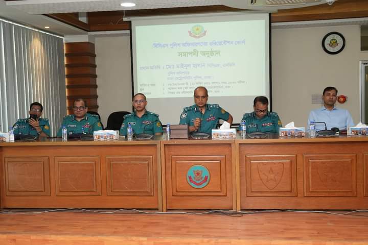 ডিএমপির পিআরএন্ডএইচআরডি বিভাগের ট্রেনিং একাডেমীর ব্যবস্থাপনায় অনুষ্ঠিত বিসিএস পুলিশ ব্যাচের ওরিয়েন্টেশন কোর্সে ১০৭ জন কর্মকর্তা অশগ্রহণ করেন। কোর্সটি গত ২৪ সেপ্টেম্বর ২০২৪ খ্রি. থেকে শুরু হয়ে আজ রবিবার (৬ অক্টোবর ২০২৪ তারিখ) শেষ হয়। এতে ডিএমপির বিভিন্ন বিভাগ ও তার কার্যাবলী সম্পর্কে সদ্য যোগদানকৃত সহকারী পুলিশ সুপারদের সম্যক ধারণা দেওয়া হয়।