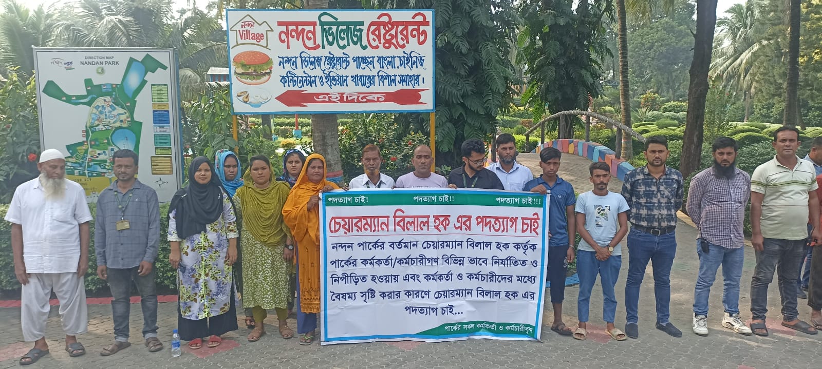 নন্দন পার্কে ডিবি হারুনের শেয়ার হোল্ড ও চেয়ারম্যানের দূর্নীতির অভিযোগে সংবাদ সম্মেলন ও মানববন্ধন