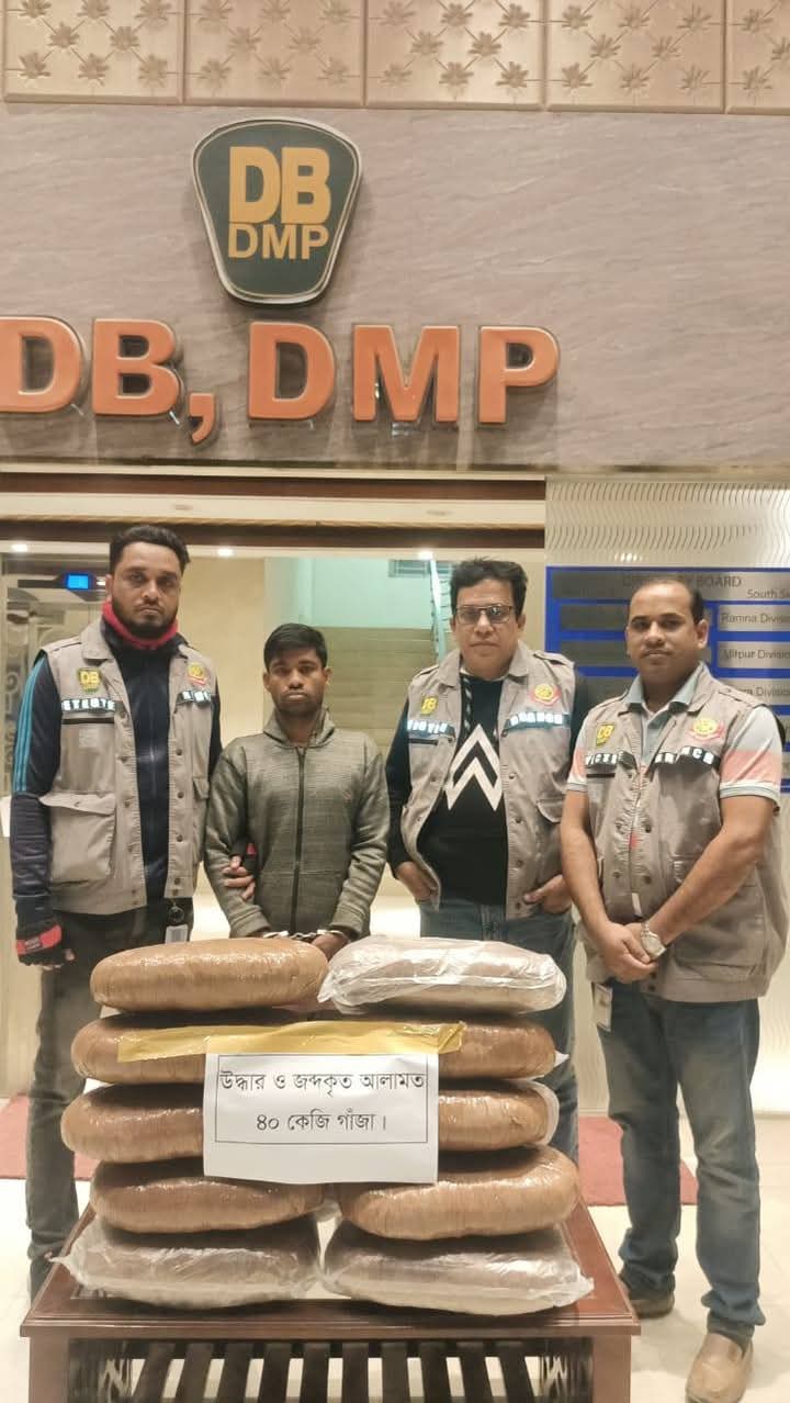 ধানের বস্তার নিচে লুকানো ৪০ কেজি গাঁজা জব্দসহ এক মাদক কারবারিকে গ্রেফতার করেছে ডিবি-মতিঝিল