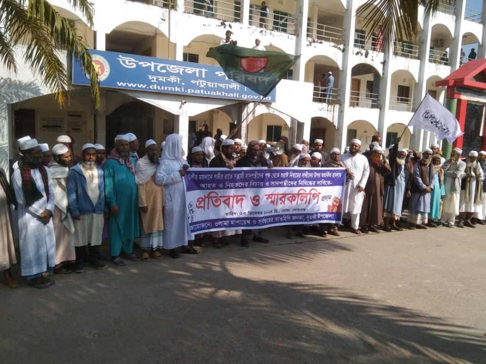 তাবলীগ জামাতের উলামা পরিষদ দুমকি উপজেলা সভাপতি মাওলানা মোঃ রুহুল আমিন বলেন "ভারতের কথিত মাও: সাদ সাহেবের অনুসারী (সাদপন্থী-এতায়াতী) যারা ২০১৮ সালের ১ ডিসেম্বর টঙ্গী ইজতেমার মাঠে সন্ত্রাসী কায়দায় আক্রমণ করে শত শত আলেম-উলামা, ছাত্র ও তাবলীগের সাধারণ সাথীদেরকে মারাত্মক আহত করেছিল এবং ১৮ ডিসেম্বর/২৪-এ আবার টঙ্গী ইজতেমার মাঠে পরিকল্পিতভাবে সন্ত্রাসী কায়দায় আক্রমণ করে ০৪ জনকে হত্যা করেছে। অনতিবিলম্বে হত্যায় জড়িত ও নির্দেশদাতাদের গ্রেফতার, সর্বোচ্চ শাস্তি প্রদান এবং এহেন সন্ত্রাসীদের সকল কার্যক্রম বাংলাদেশে নিষিদ্ধের দাবি করেন।