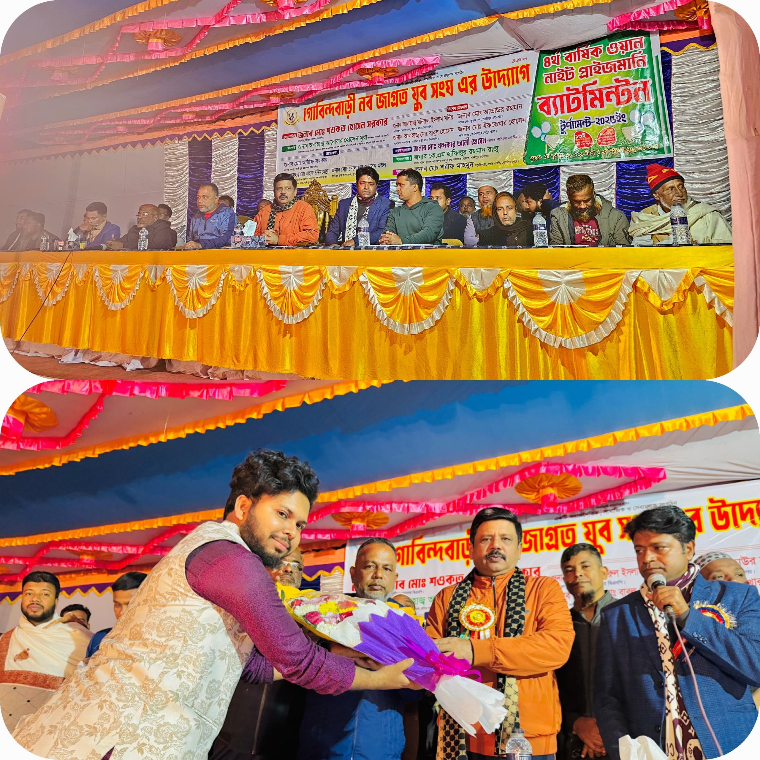 গাজীপুরের কাশিমপুরে গত ১৩ জানুয়ারি রোজ সোমবার সন্ধ্যা ৭:৩০ মিনিটে গাজীপুরের কাশিমপুরে আওতাভুক্ত ০৩ নং ওয়ার্ডের গোবিন্দবাড়ী গ্রামে একটি অরাজনৈতিক ও সেবামূলক সংঘটন গোবিন্দবাড়ী নব জাগ্রত যুব সংঘ এর উদ্যোগে ওয়ান নাইট ব্যাডমিন্টন টুর্ণামেন্ট ২০২৫ অনুষ্ঠিত হয়।