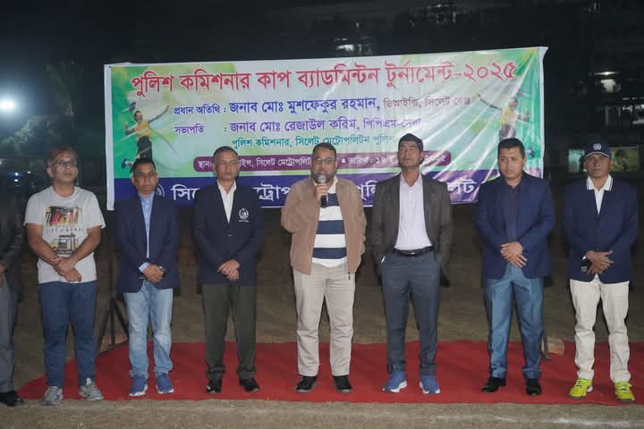 গতকাল ১৭/০১/২০২৫ খ্রিঃ শুক্রবার সন্ধ্যা ০৭.০০ ঘটিকায় এসএমপি পুলিশ লাইন্সে সিলেট মেট্রোপলিটন পুলিশের মান্যবর পুলিশ কমিশনার জনাব মোঃ রেজাউল করিম, পিপিএম-সেবা মহোদয়ের সভাপতিত্বে "পুলিশ কমিশনার কাপ ব্যাডমিন্টন টুর্নামেন্ট-২০২৫"-এর শুভ উদ্বোধনী অনুষ্ঠানে প্রধান অতিথি হিসেবে উপস্থিত ছিলেন সিলেট রেঞ্জের সম্মানিত ডিআইজি জনাব মোঃ মুশফেকুর রহমান মহোদয়।