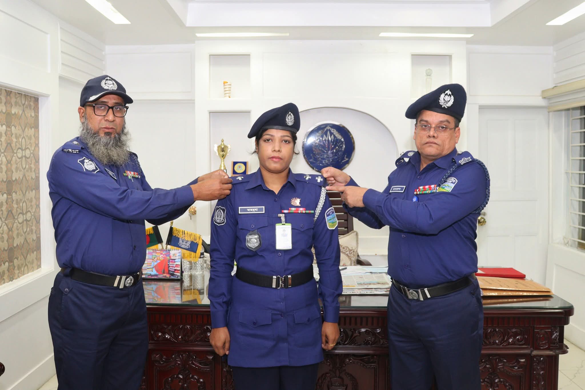 পদোন্নতি প্রাপ্ত পুলিশ সদস্যকে র‍্যাংক ব্যাজ পরিধান করালেন পুলিশ সুপার জনাব মোঃ কামরুল ইসলাম