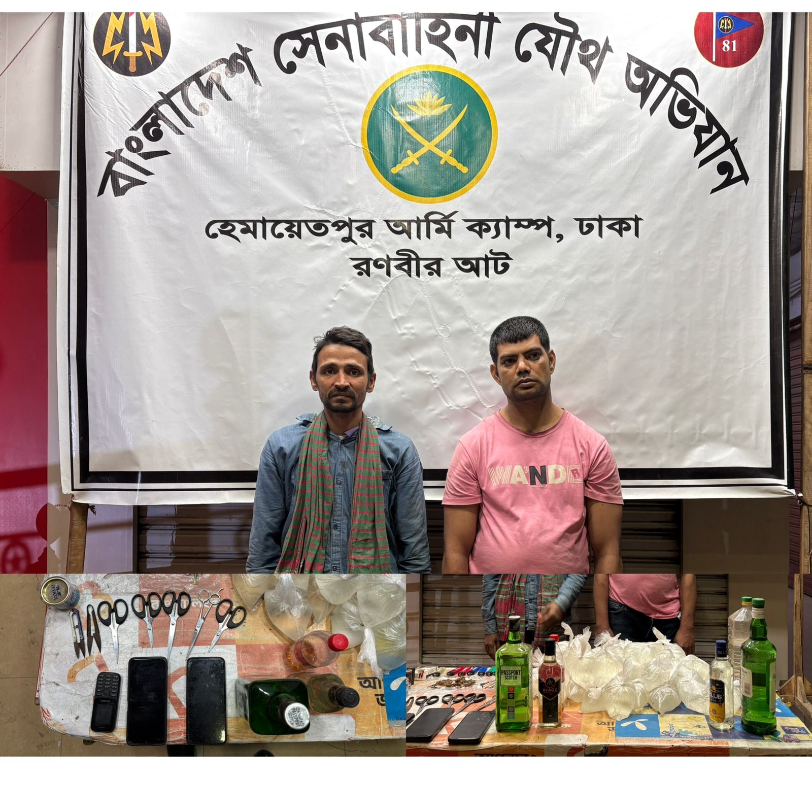 সাভারের হেমায়েতপুর বাসস্ট্যান্ড এলাকায় সেনাবাহিনীর মাদকবিরোধী অভিযানে বিপুল পরিমাণ মাদকদ্রব্যসহ দুইজন মাদক ব্যবসায়ীকে আটক করা হয়েছে। সাভার সেনা ক্যাম্পের আওতাধীন এলাকায় ২ ফেব্রুয়ারি ২০২৬ তারিখ রাত আনুমানিক ১২টা ৩০ মিনিটে সেনাবাহিনীর একটি টহল দল সন্দেহজনক গতিবিধির কারণে দুই ব্যক্তিকে তল্লাশি করে তাদের আটক করে।
